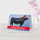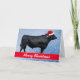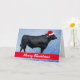 Uma foto de um touro negro de Angus vestindo um chapéu de Papai Noel sobre fundo de neve é perfeita para o criador de Angus.