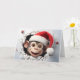 Dê ao seu Natal um toque selvagem com este retrato de animais de Natal featuring um lindo macaco bebé com um chapéu de Papai Noel na frente, fundo de flocos de neve azuis no interior e uma doce mensagem de "Feliz Natal" em uma fonte nevada no interior. Cartão de Natal perfeito para amantes de animais e vida selvagem! Apenas da Yips N' Howls.