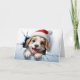 Dê ao seu Natal um toque selvagem com este retrato de Animais de Natal featuring um Cachorrinho de Bebê usando um Chapéu de Papai Noel na frente, flocos de neve azuis no fundo e uma doce mensagem de "Feliz Natal" em uma fonte com neve dentro. Cartão de Felicitações perfeito para amantes de Animais e Vida Selvagem! Somente na Yips N' Howls.