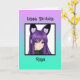 Menina de anime roxa e preta, com orelhas de raposa, personalizou o cartão de aniversário com uma página colorida na dentro.