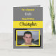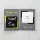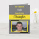 Para um cartão especial de aniversário de tio. Personalize este Cartão de Saudações com uma fotografia e um nome. Projetado em cinza, amarelo e preto.