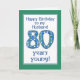 Cartão Aniversário azul, verde, branco chique do 80 para