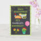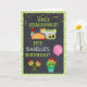 Um cartão de aniversário temático de Tex-mex. A parte dianteira diz Gaucamole que santamente é <name's> aniversário. O fundo é um teste padrão do redemoinho do verde limão com uma imagem do chalboard mergulhada sobre a parte superior. Ilustrado com tacos, guacamole, um cacto bonito do verde do kawaii em maracas do sombrero e do partido e em um balão. Mensagem no interior que você pode personalizar.