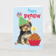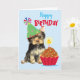 Feliz aniversário com este design bonitinho com um sorridente e vestido cachorrinho de Yorkshire Terrier com um cupcake de aniversário. O texto pode ser facilmente alterado; basta clicar no botão personalizar.