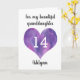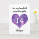 Um cartão personalizado de 14 para a neta que tem um coração de aquarela roxo. Você pode personalizar o coração aquarela com a idade que você precisa e adicionar seu nome embaixo do coração. A mensagem do cartão de dentro lê uma mensagem de aniversário sincera, que também pode ser facilmente personalizada se quisermos.