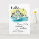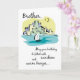 Uma ilustração muito bonito de um veleiro ao lado de uma cidade em um dia ensolarado. Aperfeiçoe para desejar um feliz aniversario muito a um irmão que goste do mar.
