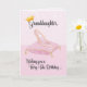 Faça os desejos da sua neta se tornarem realidade, começando com este cartão da Cinderela. Um sapato de vidro descansando sobre uma almofada rosa claro é exatamente o tamanho certo para trazer maravilha e magia para o seu aniversário especial. O fundo é rosa claro com redemoinhos brancos, aumentando o charme.