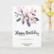 Cartão Aniversário da Cor d'Água das Flores Rosa e Cinza