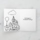 Este cartão tem uma mão desenhada com dinossauro e flores brilhantemente brilhantes, brilhantes, com um balão e cupcake. Dentro é uma página de bônus "Color Me".