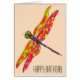 Cartão de aniversário com a ilustração de arte original de Dragonfly pelo artista Sacha Grossel, com néon pintado por inseto de Dragonfly. Colorida e vibrante