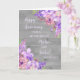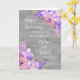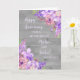 Feliz cartão de aniversário de casamento para mãe e pai com lindas flores púrpuras, madeiras rústicas e versos sentimentais.