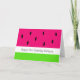 Um cartão de aniversário de melancia, que você pode personalizar facilmente com a idade e o nome da criança na frente. Dentro lê uma mensagem de aniversário que você também pode mudar facilmente.