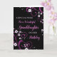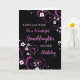 Cartão de aniversário para neta com flores bonito, pretas e roxas e verso pensativo.