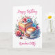 Um pedaço bonito de bolo no estilo ai com cor de aniversário com flores rosa e azuis para uma xícara de café ou cartão de aniversário floral bonito para a vovó.