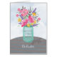 Deseje um casal de bênçãos em seu aniversário na Páscoa. Este bonito vaso de jarro de mason contém um buquê misto de flores com aspecto aquoso numa mesa listrada. Bonito cartão religioso para dizer feliz aniversário.