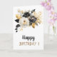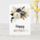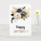 Cartão Aniversário das Flores Brancas Douradas e Pretas