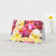 Cartão de cumprimentos de aniversário para uma irmã. Pintura digital de flores tropicais - Plumeria, Frangipani com pétalas em tons de amarelo, branco, rosa, magenta e laranja. Design brilhante e colorido. Arte, imagem e verso © Shoaff Ballanger Studios.