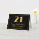 Este estilo vintage e os anos vindouros inspiraram o design do cartão de saudação temático de aniversário que apresenta um grande estilo de deco inspirado no número "21", a mensagem "Happy aniversário de 21 anos", um nome editável e um padrão de borda que consiste em linhas finas na frente. O fundo da frente é preto colorido. O dentro tem uma mensagem de saudação de aniversário personalizável, ou talvez pudesse ser apagado e deixado o vazio se uma mensagem fosse escrita manualmente. Um cartão de cumprimentos de aniversário personalizado como este pode ser uma maneira divertida de fazer votos de aniversário a alguém que comemora seu vigésimo primeiro aniversário. [~Z0000463]