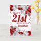 Um lindo cartão de aniversário de 21 anos feliz de balão vermelho e prateado. Esta design fabulosa é a maneira perfeita de desejar a alguém um feliz aniversário de vinte e um anos (ou qualquer idade!) Personalize com nosso próprio nome e mensagem personalizados. Tipografia de cor vermelha e belos balões vermelhos e prateados.