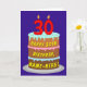 A frente deste design de cartão de saudação de aniversário alegre e divertido apresenta uma representação de um bolo de aniversário de três níveis com velas em forma de número no topo, mostrando a idade "30", juntamente com a mensagem "HAPPY ANIVERSÁRIO DE 30 ANOS", e um nome de destinatário personalizado. O dentro tem uma mensagem de saudação de aniversário personalizável, ou talvez pudesse ser apagado e deixado o vazio se uma mensagem fosse escrita manualmente. Um cartão de cumprimentos de aniversário animado e personalizado como este pode ser uma maneira divertida de entregar cartões de aniversários a alguém que comemora seu trigésimo aniversário. [~Z0000620]