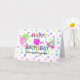 Um cartão de aniversário divertido para uma neta de 3 anos com confete no fundo em cores pastéis, o centro com "aniversário de 3 anos Feliz" e "neta" coloridos a preto. No lado esquerdo das palavras você encontra um balão de bolinhas rosa e um balão de bolinhas verde, um chapéu de festa à direita.