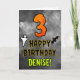 A frente deste assustador e assustador design do cartão de saudação de aniversário do Hallowe'en temed apresenta um grande número "3". Também apresenta a mensagem "FELIZ ANIVERSÁRIO", e um nome personalizado. Há também representações de um morcego e de um fantasma na frente. O dentro apresenta uma mensagem de saudação de aniversário personalizada, ou talvez possa ser apagado e deixado vazio se uma mensagem for escrita manualmente. Um cartão de aniversário personalizável como este pode ser uma maneira divertida de enviar uma mensagem para celebrar o terceiro aniversário de alguém que também cai no dia 31 de outubro (Halloween). [~Z0000547]