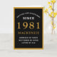 Cartão de aniversário de 40 anos preto e de ouro para essas nasceres especiais em 1981. Personalize facilmente o texto na frente e no interior deste cartão de aniversário usando o modelo fornecido. Parte da faixa de padrões de configuração de cartões de saudação.