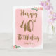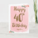 Placa de aniversário de 40 anos cor rosa personalizada e dourada, que apresenta uma cor d'água cor-de-rosa na frente contra o brilho dourado "aniversário de 40 anos feliz". Observe que não há brilho real neste produto, mas um efeito de design. Você poderá personalizar facilmente a frente com o nome dela. O dentro lê uma mensagem de aniversário e as costas podem ser personalizadas com o ano. Isso faria uma única manutenção personalizada para seu quadragésimo aniversário.