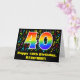 Este design de cartão de saudação animado, empolgante e colorida com tema de aniversário apresenta um grande número "40" com um padrão inspirado no gradiente do espectro arco-íris. Ele também apresenta a mensagem "Happy aniversário de 40 anos," e um nome de destinatário personalizável. A frente também tem notas de música coloridas e padrões de símbolos. O dentro apresenta uma mensagem de saudação de aniversário personalizada, ou talvez possa ser apagado e deixado o vazio se uma mensagem for escrita manualmente. Um cartão de saudação de aniversário personalizado como este pode ser usado para reconhecer o aniversário de um compositor de música, um músico, um cantor ou outro. [~Z0000426]