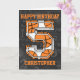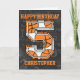 Deseje à futura estrela de basquete um Feliz aniversário de 5 com este cartão de aniversário moderno com um design de quadro com um padrão sutil de termos de basquete. A frente do cartão tem um grande número 5 com bolas de basquete dentro, com uma saudação de aniversário e um texto personalizável para adicionar o nome do aniversariante ou aniversariante. O dentro do cartão tem uma mensagem de aniversário personalizável. Se você quiser esta design com um número diferente na frente, por favor entre em contato conosco através da nossa loja CelebrationBazaar e nós ficaríamos felizes em criar para você.