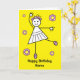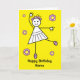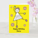 Desenho animado fofo de uma menina palito sorrindo e dançando balé usando sapatos de balé rosa. Ela está cercada por flores. O cartão tem um fundo amarelo brilhante, mas é fácil editar para uma cor diferente ou um branco minimalista agradável. Personalize facilmente este cartão editando o texto do modelo na frente e dentro. Desenho engraçado adorável para crianças. Obrigado por visualizar meus designs!