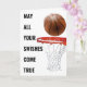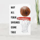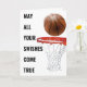 Cartão de aniversário de basquete criativo com design temático de basquete e linha engraçada para jogador de basquete, treinador ou fã de esportes de equipe. Edite o texto para adicionar o nome.