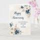 Feliz cartão de aniversário de casamento para mãe e pai com elegantes marinhos, azuis e brancas, flores de aquarela.