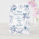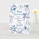 Feliz cartão de aniversário de casamento para mãe e padrasto com flores azuis modernas e design de espiral, e verso sincero.