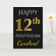 Cartão Aniversário de Casamento de 12 Dourado preto, Faux