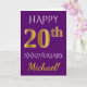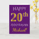 Este simples e personalizado cartão de comemoração de aniversário de casamento apresenta a mensagem "FELIZ 20 ANIVERSARY", com o "20" a ter uma aparência falsa de ouro. A frente também apresenta um nome personalizado e um fundo cor-de-roxo. A dentro apresenta uma mensagem de saudação personalizada de aniversário de casamento. Pode ser dado a um marido ou a uma mulher para celebrar o vigésimo aniversário de casamento do casal. [~Z0000089]