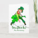 Trevo sobre! Seu aniversário. Um leprechaun energético é uma estrela do rock e decked para fora com uma guitarra do trevo no cobrir do cartão do papel do dia deste St Patrick. Várias máscaras do verde para o sentimento do dia desse St Patrick especial. Cortesia principal Liftarn/OpenClipArt do Leprechaun. Estúdios de Ballanger do ©Shoaff dos direitos reservados da imagem e do verso.