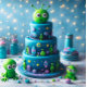 BOLO DE ANIVERSÁRIO INFANTIL COM TEMA DE ESPAÇO E ALIENÍGENA FOFO NO CARTÃO. CÓPIA TOTALMENTE EDITÁVEL NO VERSO.
