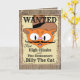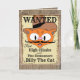 Este cartão de saudação humorístico contém um gato vaqueiro fora da lei, procurado por crimes indescritíveis!