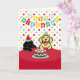 Labrador Amarelo e Cartão de Aniversário do Labrador Negro. Adorável Labrador Amarelo e Puppies Negros Labrador estão comemorando seu aniversário!!! Padrão de bolinhas colorido. Cartoon exclusivo e engraçado Labrador Retriever criado por Naomi Ochiai do Japão.