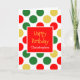 Um cartão de aniversário personalizado de Natal vermelho, verde e bolinhas de ouro para ele ou para ela. Você será capaz de personalizar facilmente a frente deste cartão de cumprimentos de aniversário de feriados com seu nome. A parte traseira da placa apresenta as mesmas cores festivas douradas, vermelhas e verdes bolinhas. Por favor, veja todas as fotos. Este cartão de aniversário de Natal personalizado faria uma maravilhosa manutenção.