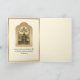 Celebre o Aniversário do Sacerdócio com esta bela imagem católica tradicional vintage de um Crucifixo dourado com citação das escrituras na frente e o Padre oferecendo o Santo Sacrifício da Missa no altar por dentro. Um versículo das escrituras está dentro, bem como uma saudação. Todo o texto e fontes podem ser modificados.
