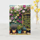 Planta amante cartão de aniversário. Uma bonito arte ai para um jardineiro ou amante de plantas. Trellis com a Clematis e plantas de cera que crescem fora num dia bonito de Verão. Ai arte feita no estilo de quadrinhos.