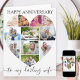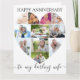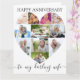 Diga Feliz Aniversário com uma coleção de fotos de coração de amor, cartão personalizado de aniversário de casamento. O modelo de foto está configurado para que você adicione suas fotos, trabalhando em linhas de cima para baixo. A colagem de fotos contém 11 fotos que são exibidas em uma mistura de retratos, paisagens e formatos quadrado/instagrama. "para minha querido" é escrito em um elegante guião manuscrito e o texto dentro é totalmente editável. Você também pode editar "Feliz Aniversário" se quiser que o design seja diferente. Um cartão de guarnição adorável que pode enquadrar ou colocar numa caixa de memória para tesourar para sempre.