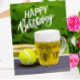 Aniversário de tênis com Cerveja e raquete de bola em Presentes de Cartão Verde para Amantes de Tênis para o aniversário do dia em que uma pessoa foi nascer, normalmente tratado como uma ocasião para comemorar e dar presentes.