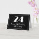 A frente desta design de cartas de saudação de aniversário inspirada e de aparência vintage, apresenta um grande estilo de deco de arte inspirado no número "24", a mensagem "Feliz 24 de aniversário", um nome personalizado e um padrão de borda composto por linhas finas. O dentro apresenta uma mensagem de saudação de aniversário personalizada, ou talvez possa ser apagado e deixado vazio se uma mensagem for escrita manualmente. Um cartão de saudação de aniversário personalizado como este pode ser uma maneira divertida de enviar cartões de aniversários a alguém que comemora seu vigésimo quarto aniversário. [~Z0000462]