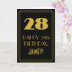 A frente deste design de cartão de saudação de aniversário inspirado no estilo 1920/1930 apresenta um grande deco de arte com o número inspirado "28", a mensagem "FELIZ 28 ANOS DE ANIVERSÁRIO", um nome editável e um padrão de borda composto por linhas. A frente também apresenta um fundo preto. O dentro apresenta uma mensagem de saudação de aniversário personalizada, ou talvez possa ser apagado e deixado vazio se uma mensagem for escrita manualmente. Um cartão de aniversário personalizado como este pode ser uma maneira divertida de enviar desejos de aniversário a alguém que comemora seu vigésimo oitavo aniversário. [~Z0000502]