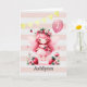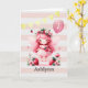 Um cartão de aniversário de 7 de fada cor-de-rosa, que pode ser personalizado com seu nome e idade. Possui cor-de-rosa, ouro e uma fada de morango com um balão rosa na frente. A mensagem da placa dentro também pode ser personalizada se desejada. Um cartão de aniversário de fada personalizado que guarda para filha, sobrinha, neta, etc.