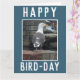 Cartão de aniversário para um passarinho ou observador de pássaros. Cartão engraçado para um entusiasta de pássaros que tem uma fotografia de gaivota. A saudação diz feliz dia de pássaros. Um ornitólogo ou Twitter. Cartão de aniversário de design de pássaro.