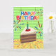 Feliz cartão de saudação de Namorado de aniversário com uma ilustração colorida de um pedaço de bolo de chocolate em camadas. Bright design com sinal de aniversário feliz, confetti, galerias e fogos de artifício. Bolo divertido é dentro. Arte, imagem e direitos de autor versos © Shoaff Ballanger Studios, 2022.